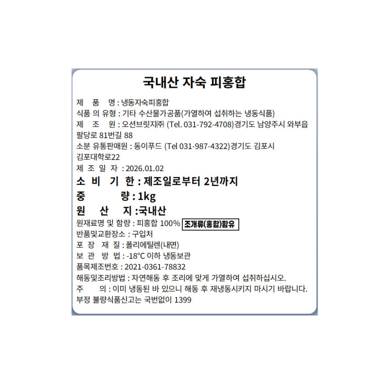 | 수입식품에 해당하는 경우 “식품위생법에 따른 수입신고를 필함”의 문구 | 상세내용참고 | ||