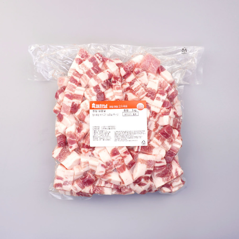 국내산 한돈 한입삼겹살 1kg 두툼한 삼겹살 가성비 대용량 찌개용 구이용 다용도