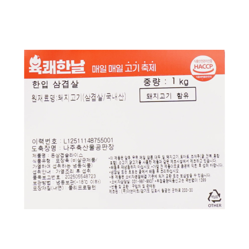국내산 한돈 한입삼겹살 1kg 두툼한 삼겹살 가성비 대용량 찌개용 구이용 다용도